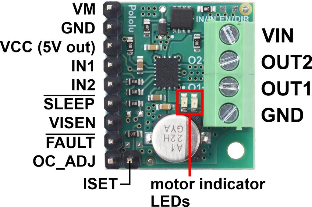 - 連続時最大 4 Aの出力電流(動作電圧やPWM周波数、周囲環境に依存。電流制限値は7.5 A(デフォルト))