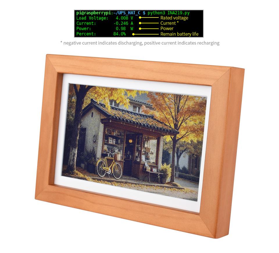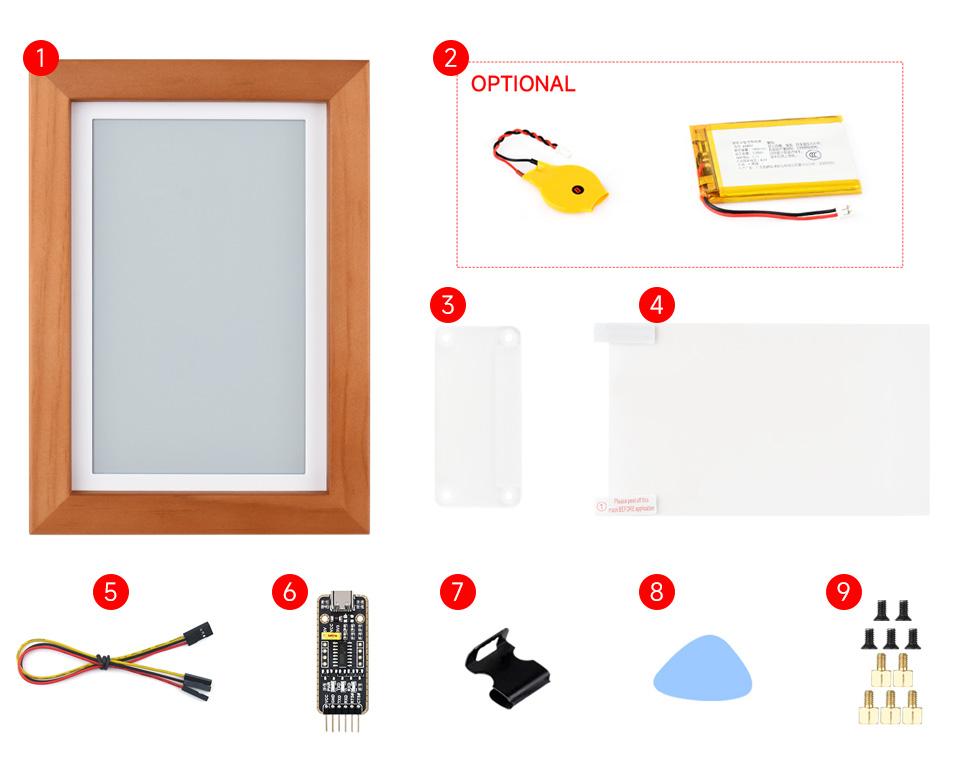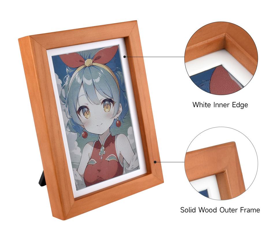 Raspberry Pi Zero 2 WHを使用する7.3インチのカラー電子ペーパーデバイスです。パイン材(松)ウォールナット仕上げのフォトフレームが付属します。