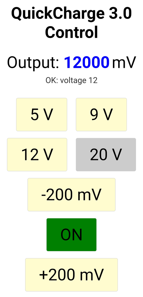 接続されたUSB充電器の種類を検出し、QC3.0でネゴシエートして5V、9V、12V、20V(充電器が対応している場合)、及び可変電圧(200mVステップ)を取り出すことができます。