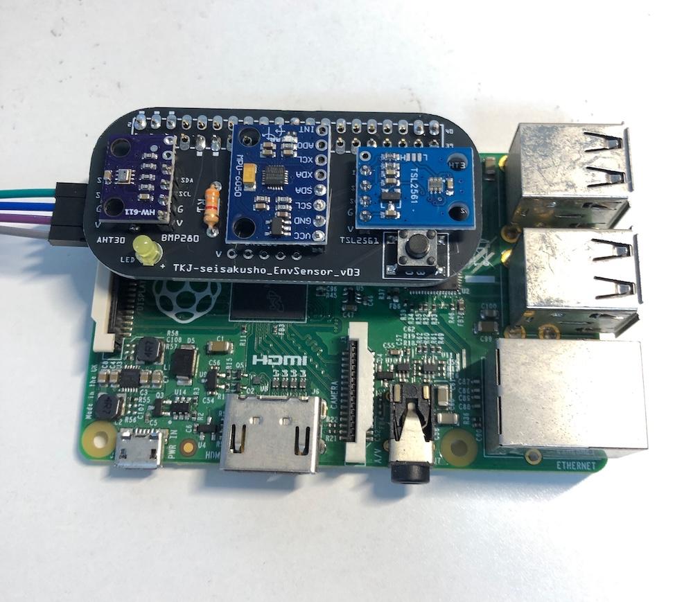 ラズベリーパイ用 環境測定基板(気温、湿度、気圧、照度、ジャイロ・振動)(完成品)