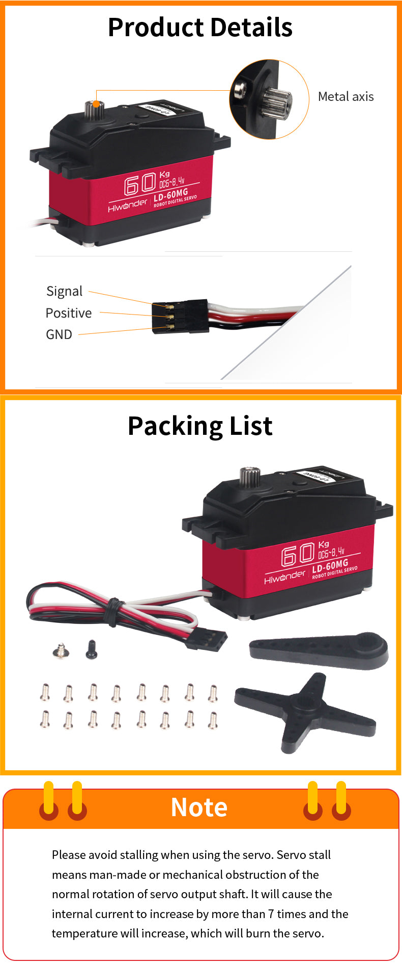 HiWonder LD-60MG PWMサーボ 60kg/180°/IP67