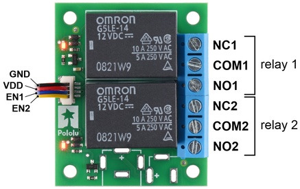Pololu 2チャンネル 12VDCリレー付SPDTリレーボード(トップコネクト型)