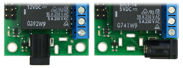 パワーリレーは最大定格 10 AのOmron G5LE-14-DC12 で、電気的に絶縁された単極双投(SPDT)スイッチを低電圧低電流の制御信号で簡単に制御できます。