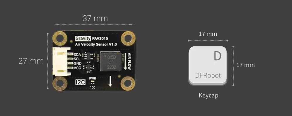 Posifa PAV3015Dが搭載された小型の風速センサです。加熱体の前後の温度差から風速を求めるサーモパイル方式により、機械式の風杯型に比べて小型で応答が速く、摩耗部品もありません。0~15 m/sの範囲を±5 %FSで測定でき、応答はおよそ125 msです。Gravityコネクタにより、ArduinoやESP32、Raspberry Piへ手早く接続できます。