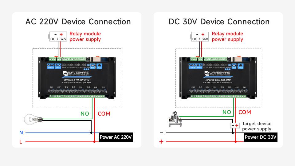 - 8チャンネルのリレー出力(最大定格:10 A、250 V AC / 30 V DC)