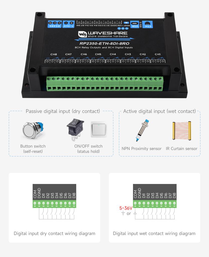 - 8チャンネルの絶縁入力(5~36 V入力)