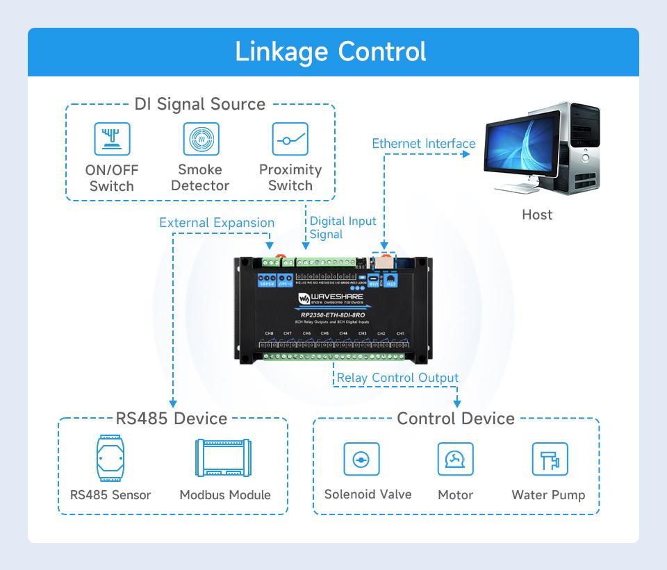 - 1 x 8ch絶縁入力リレーモジュール(RP2350搭載、Ethernet・RS-485対応)PoE版