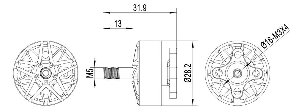 こちらのBSC 2306モデルは、5インチサイズのアクロバット飛行用ドローンに最適なブラシレスモーターで、わずか34.6 gという軽量ながら、最大1.61 kgの推力を発揮します。