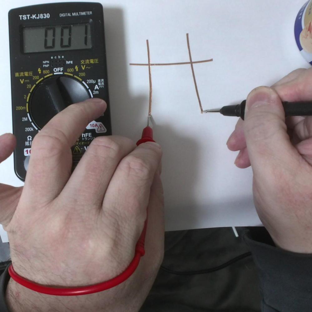 - 導電性粘着剤の銅箔テープを使います。90度の配線であっても信号が通ります。