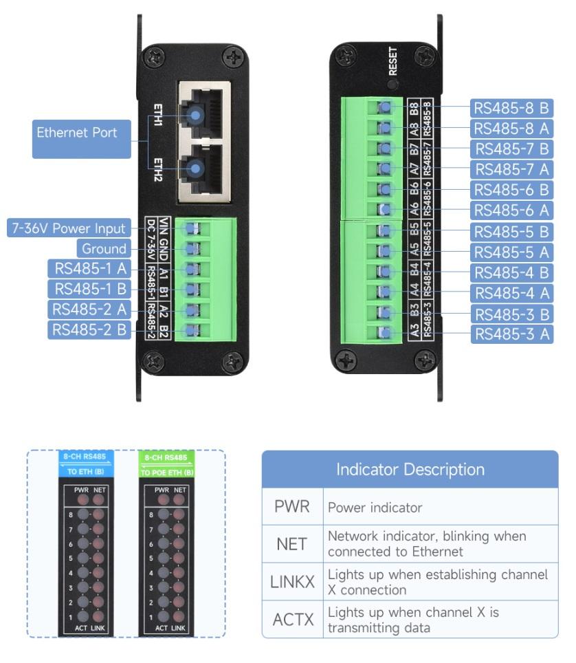 - 8チャンネルの独立したRS485ポートを搭載。各ポートごとに異なるボーレート設定が可能で、相互干渉なく動作します。