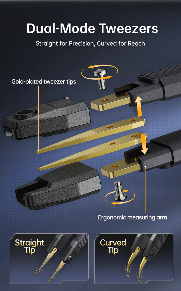 ストレート型/カーブ型のピンセットチップにより小型部品を簡単にテスト。ケルビンクリップは大型部品やスルーホール部品の正確な4線測定が可能[イメージ] - スマート認識/ディスプレイ機能