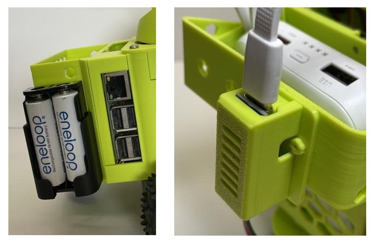 電源ノイズや電圧変動の影響を受けやすい機器に配慮し、 Raspberry Pi やオーディオ系の電源をサーボ系と分けやすい電源構成にしています。具体的には、次の2通りの方法で新たに電源確保できるようにしました。