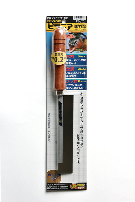 DIYの定番のこぎりとして広く使用されているピラニア鋸(のこぎり)です。素材にDYNALLOYを採用し、切れ味と耐久性を両立しています。本製品は、刃厚が0.2 mm(アサリ有り)の精密鋸です。