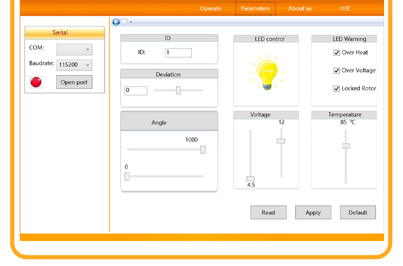 - サーボID : 0〜253ユーザ設定可能、デフォルトID 1